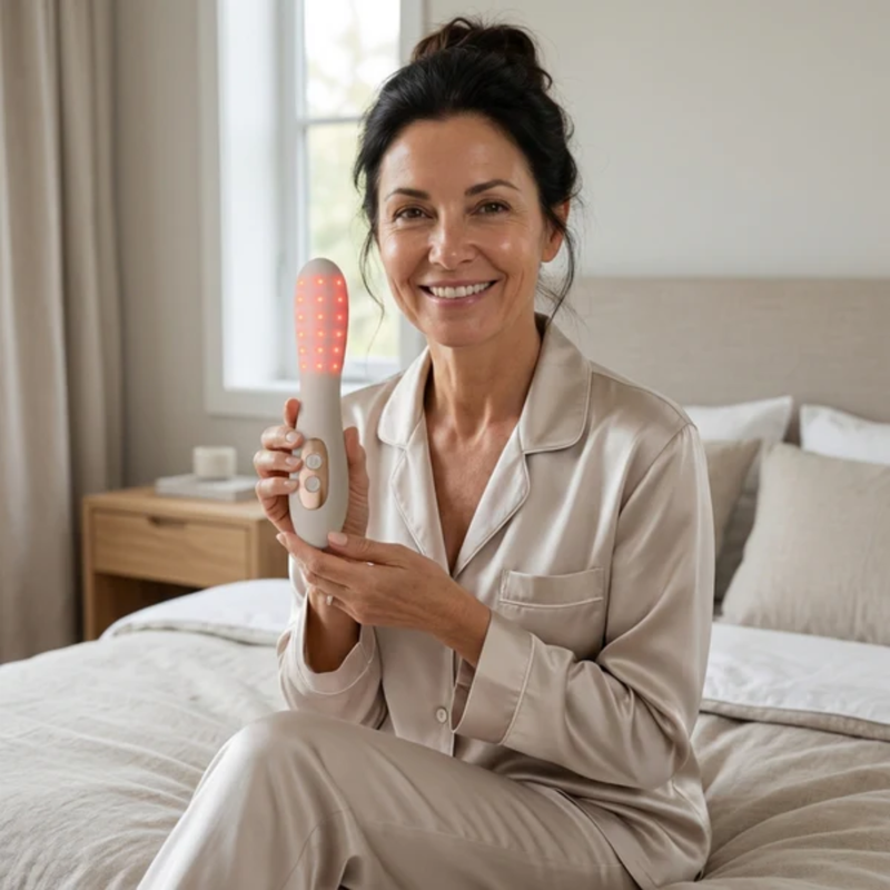 Enheten bruker lys, varme og vibrasjon – ikke hormoner – for å gjenopprette intimhelsen på en naturlig måte.